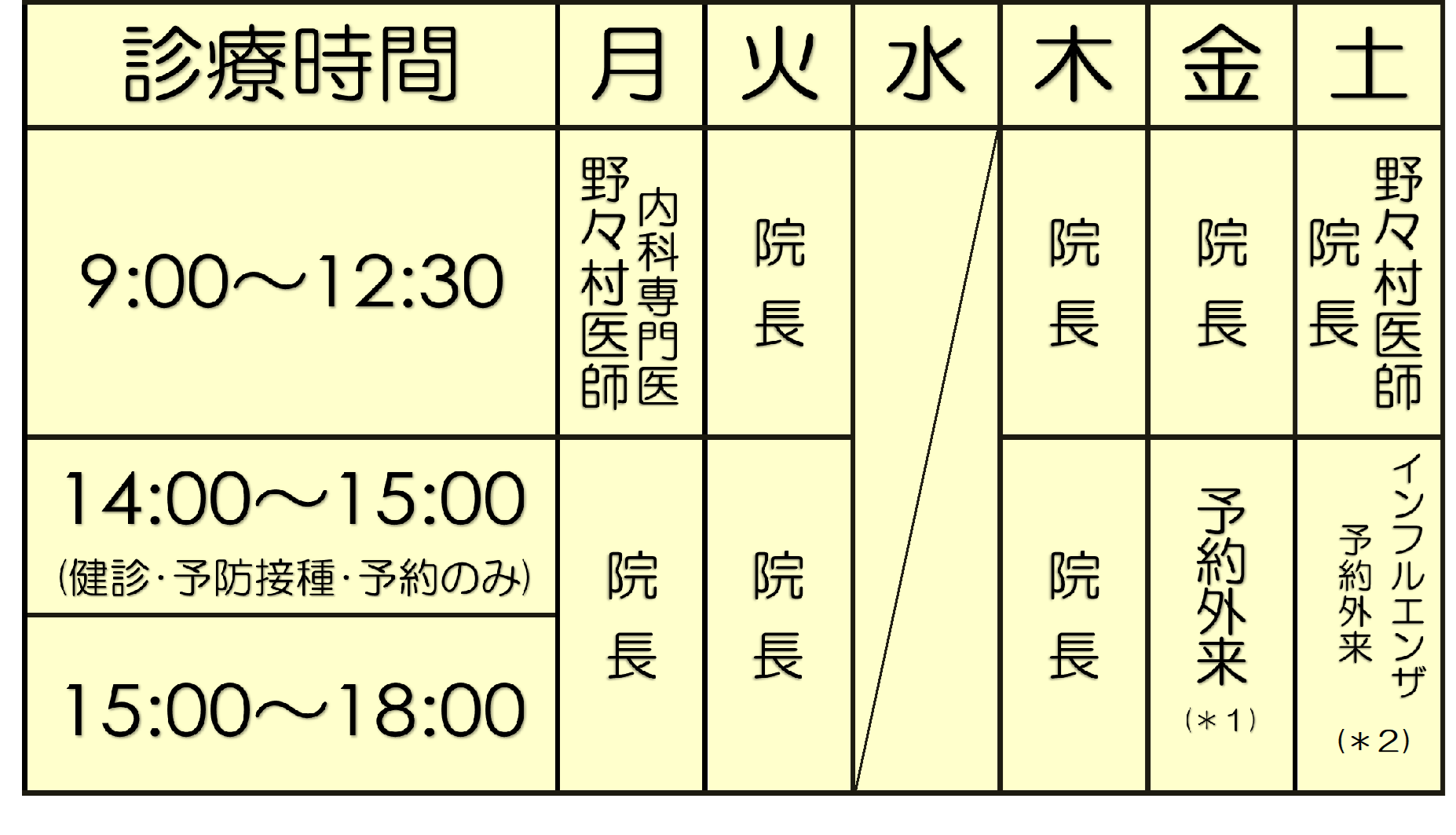 (*2)隔週で●箇所は14:00~16:00まで延長しインフルエンザワクチン外来