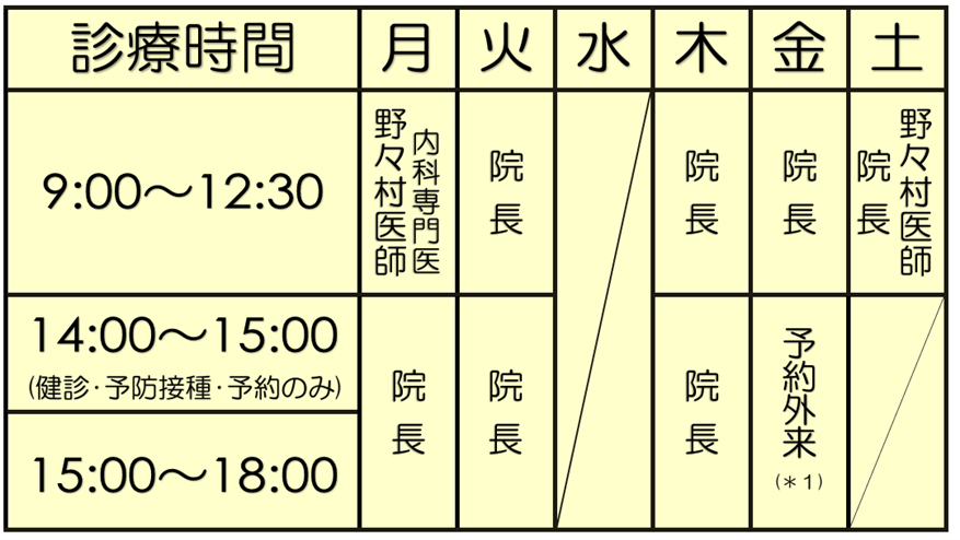 (*1)金曜は午後は隔週ベースでワクチン主体の予約外来です。12/19(金)は夕方18時まで診療します
