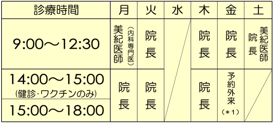(*1)金曜は午後は隔週ベースで予約外来です。1/23、2/6、2/20(金)は夕方18時まで診療します。